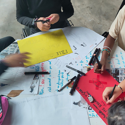 Ils avaient en amont eu l'opportunité de prendre part à 3 événements : le concert d'En apparence dans le cadre de notre 6ème temps fort Changeons de saison ! au mois d'avril, une journée de rencontre et de découverte de l'histoire de Prométhée avec Hélène Testelin et l'association Cultures en communs le 28 mai ainsi qu'une après-midi de création de slogans au début du mois de juin.