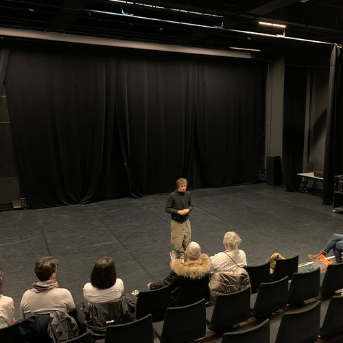 Artiste associé au Théâtre dès cette saison, Étienne Rochefort, chorégraphe de la cie 1 des Si, présentait du 26 au 28 novembre derniers sa nouvelle création Fata Morgana. Une performance entre danse, musique et cinéma, brouillant les frontières entre réalité et imagination. Un spectacle au cours duquel sont apparu·es sur scène des amateur·ices, moment rendu possible grâce à un atelier de transmission avec 2 groupes différents : l’un avec des amateur·ices de danse, l’autre avec des élèves de l’EPAS.